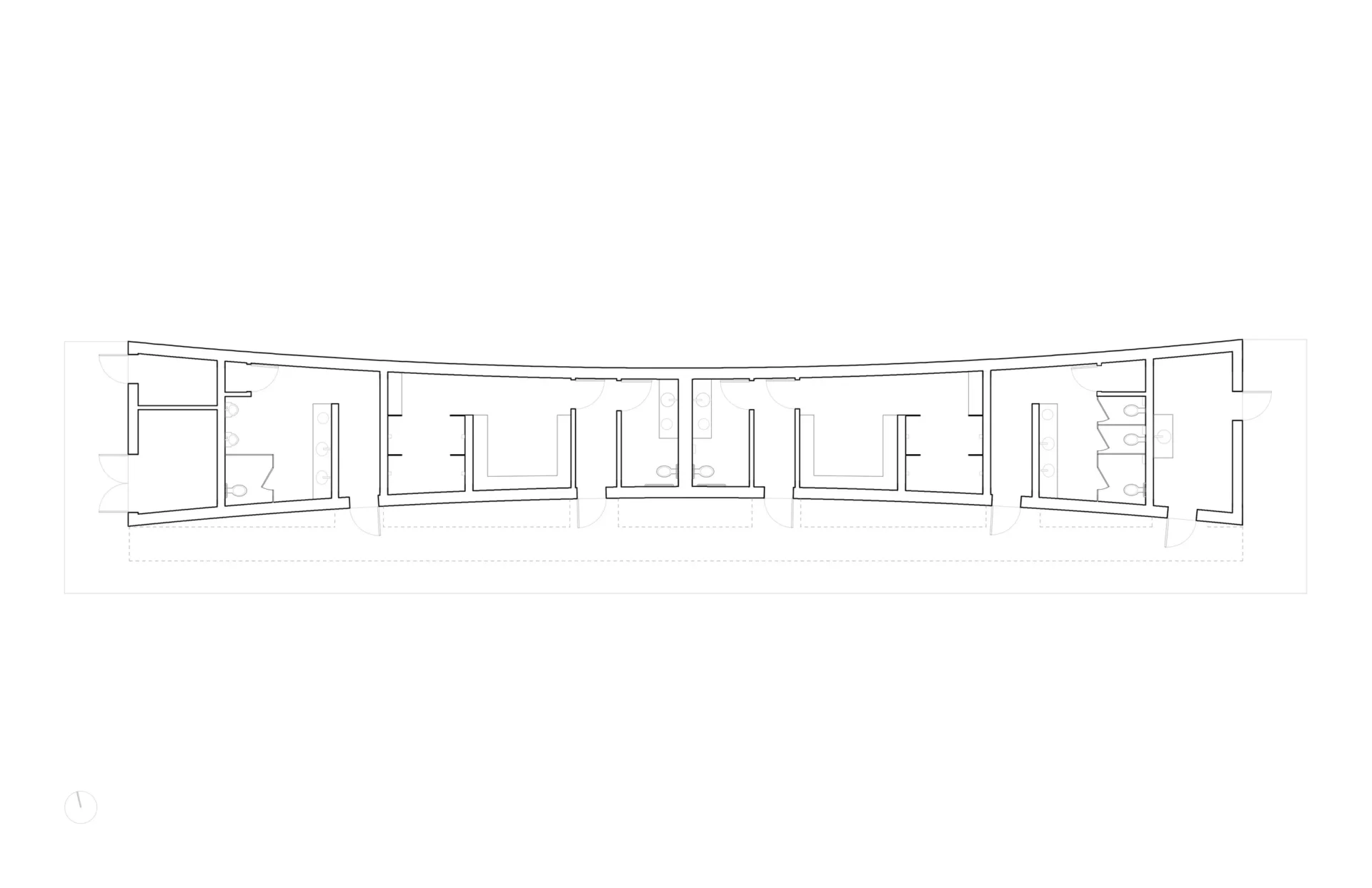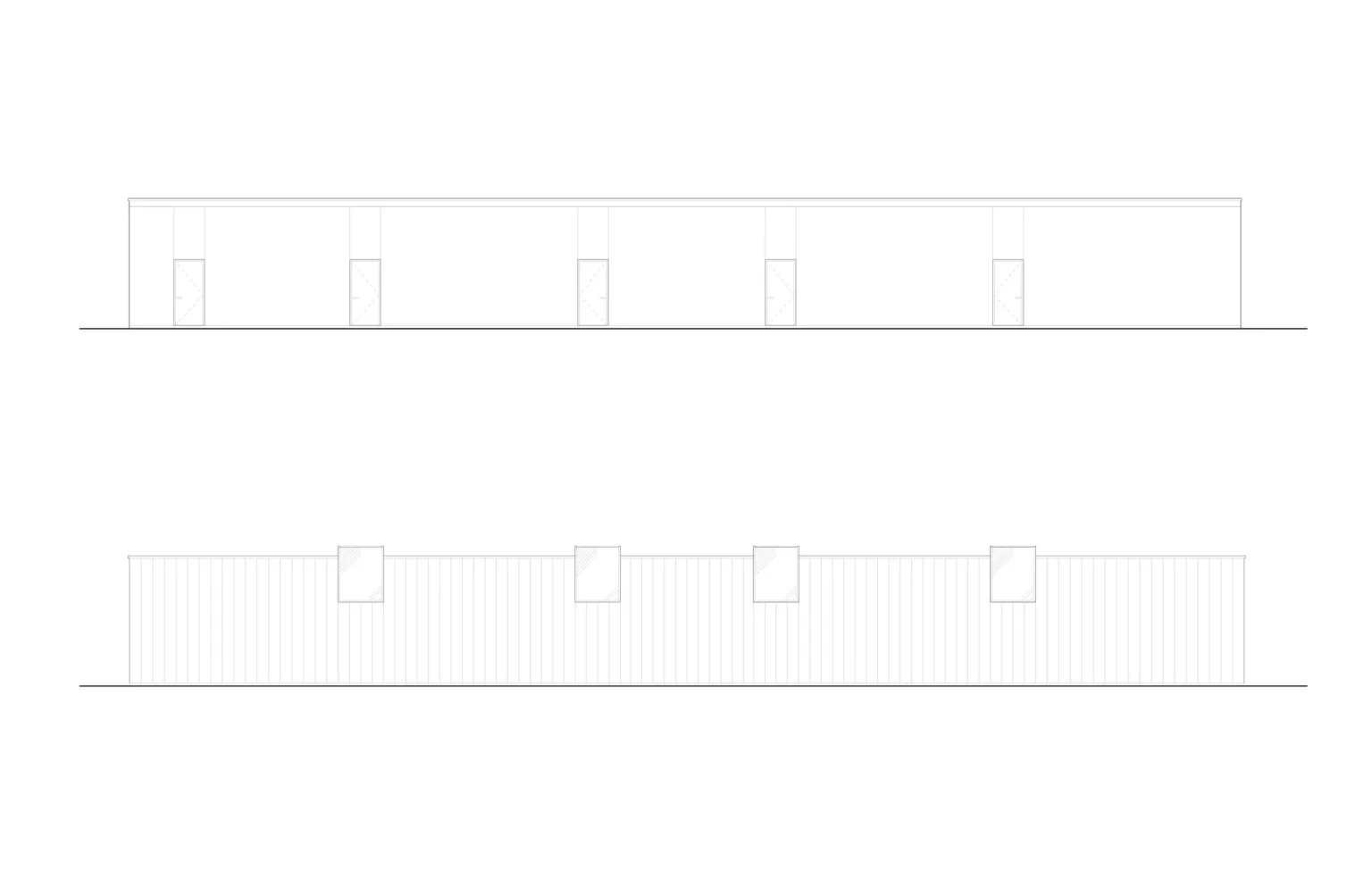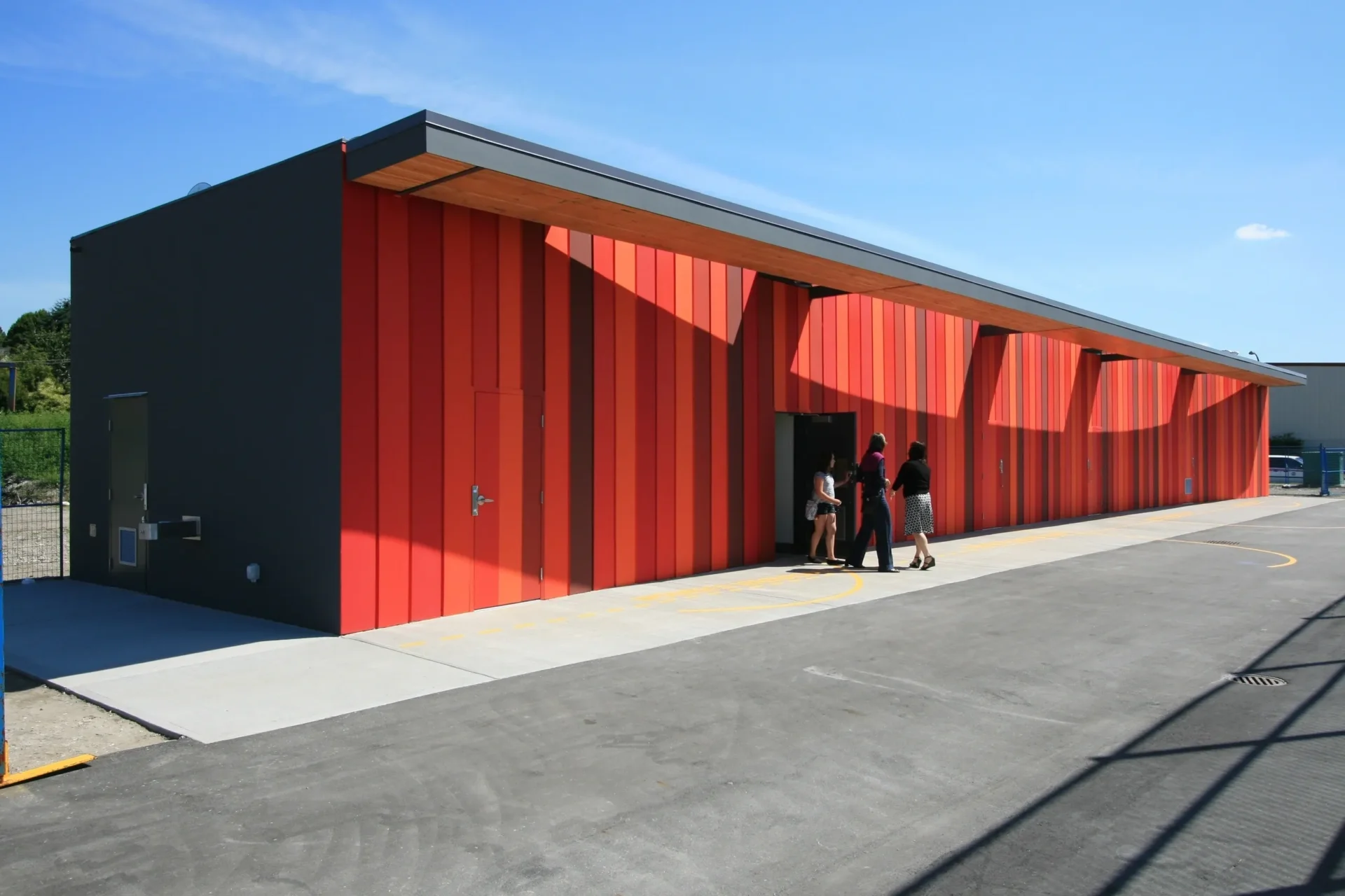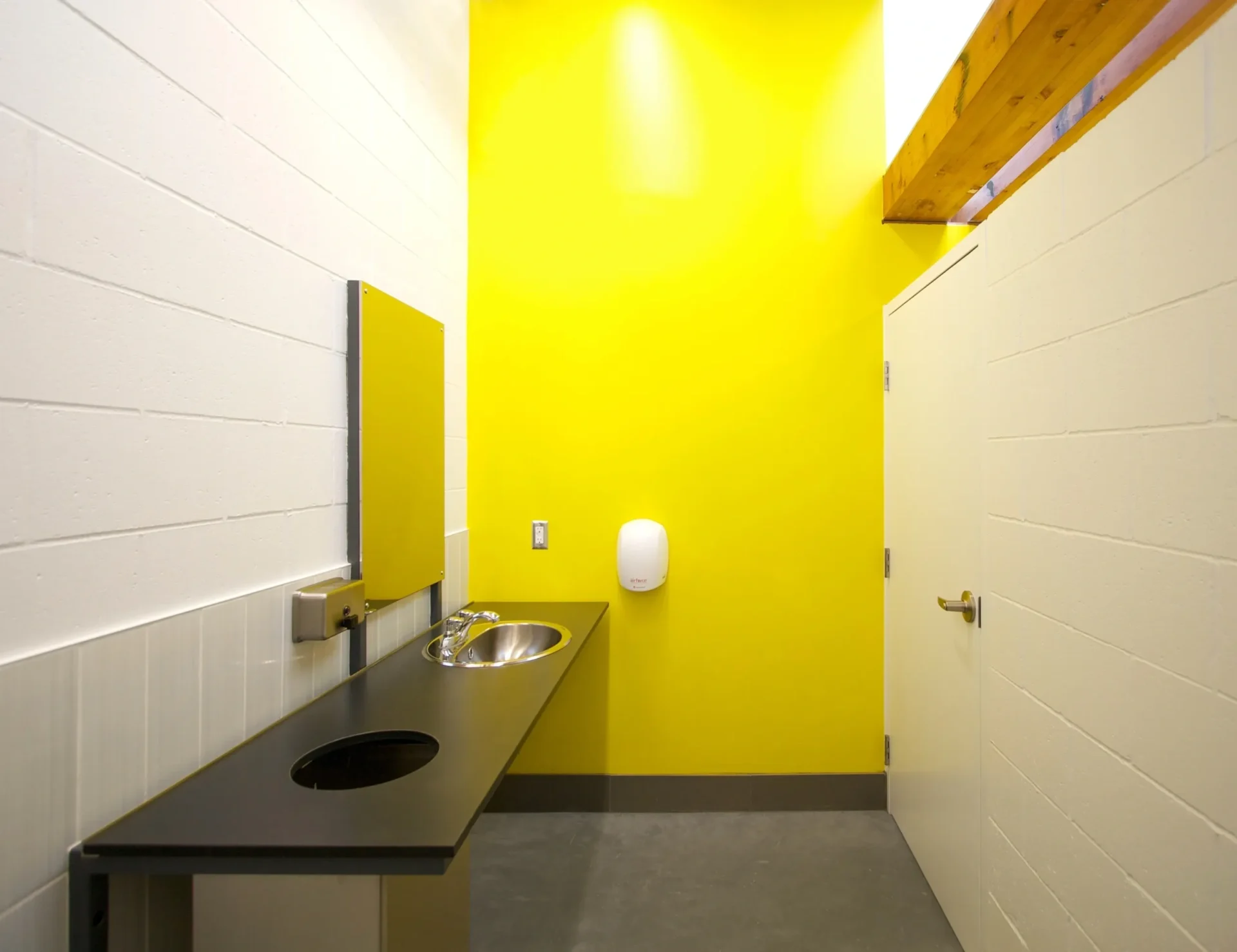The Trillium Park Fieldhouse in Vancouver provides infrastructure support to two artificial turf sports fields to its south and a small passive park to its north. At 1,700 square feet, the building contains washroom, change room and shower facilities as well as a small staff room. Acting as a wall in the open landscape, the long narrow building divides the site into two types of outdoor spaces—active sports field and leisure green space. Within the vast, flat industrial context, the field house offers a degree of definition, containment and separation between the active and passive parks. In response, the building form deflects subtly on its two long faces, becoming concave on both the north and south sides under the implied force of the adjacent uses.